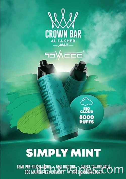 Tinggikan sesi hookah Anda ke ketinggian baru dengan puff al fakher crown bar 8000. Dibuat untuk penggemar yang mencari puncak kemewahan dan rasa, penawaran premium ini mendefinisikan kembali seni kenikmatan Shisha.